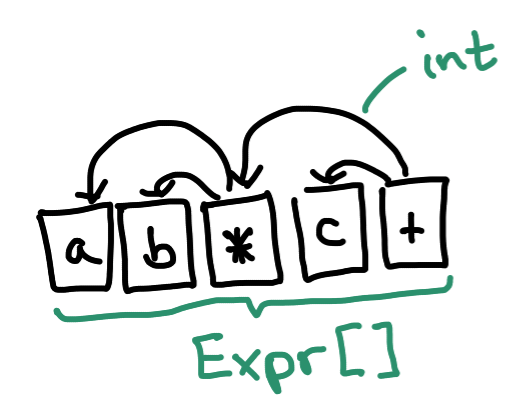 ExprPoolcould be good for locality.My favorite observation about this technique, due to a Reddit comment by Bob Nystrom, is that it essentially reinvents the idea of a bytecode interpreter. It’s pretty nifty that “merely” changing our AST data structure led us directly from the land of tree walking to the land of bytecode.