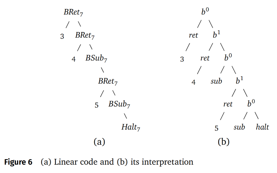 Associativity of generalized composition justifies rotation of the tree-shaped code in figure 5 into linear form, as shown in figure 6.