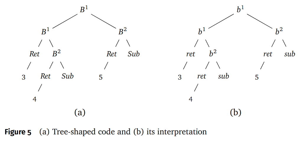 Interpreters and Compilers: Tree-Shaped Code and Linear Code.