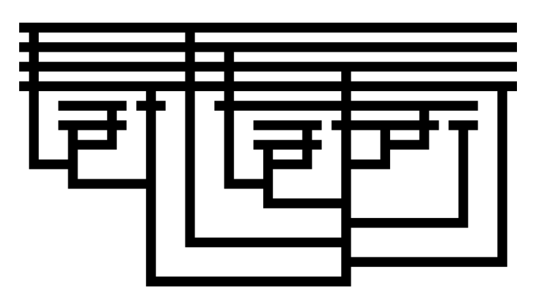- John Tromp’s Binary Lambda Diagrams. (Also Combinatory Logic Playground and the paper, Functional Bits: Lambda Calculus based Algorithmic Information Theory.)